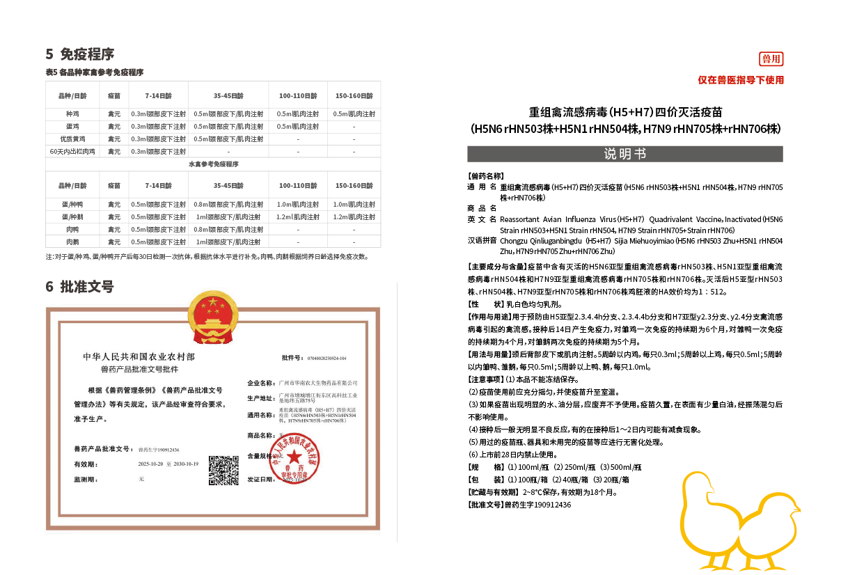 重組禽流感病毒(H5+H7)四價滅活疫苗(H5N6 rHN503株+H5N1 rHN504株,H7N9 rHN705株+rHN706株)